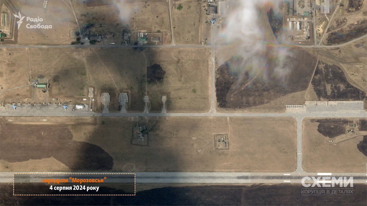 The latest #satellite images from @planet for August 4, which are available to @cxemu (@radiosvoboda), show the consequences of the attack by Ukrainian Defense Forces drones on the #Morozovsk military airfield in the Rostov region of Russia.