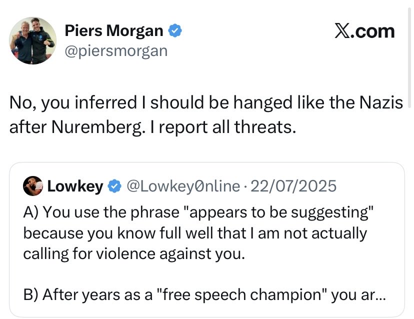 Piers Morgan reporting me to the Metropolitan Police for words in an interview.