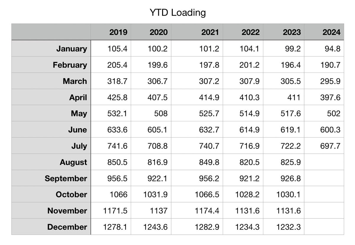 Note: This is the first July over that whole period where loading DECREASED, normally it increases in July.