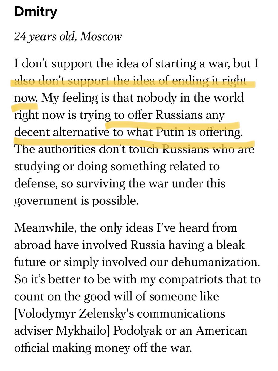 Once again, I have to remind simple things. It is not Putin who kills, tortures and rapes civilians in Ukraine. Ordinary Russians do these atrocities.