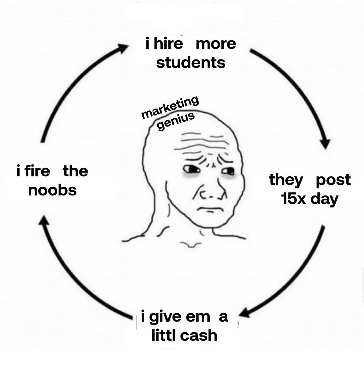 After a while, you ditch the ones that aren’t working (i.e., those who didn’t produce a single viral video).