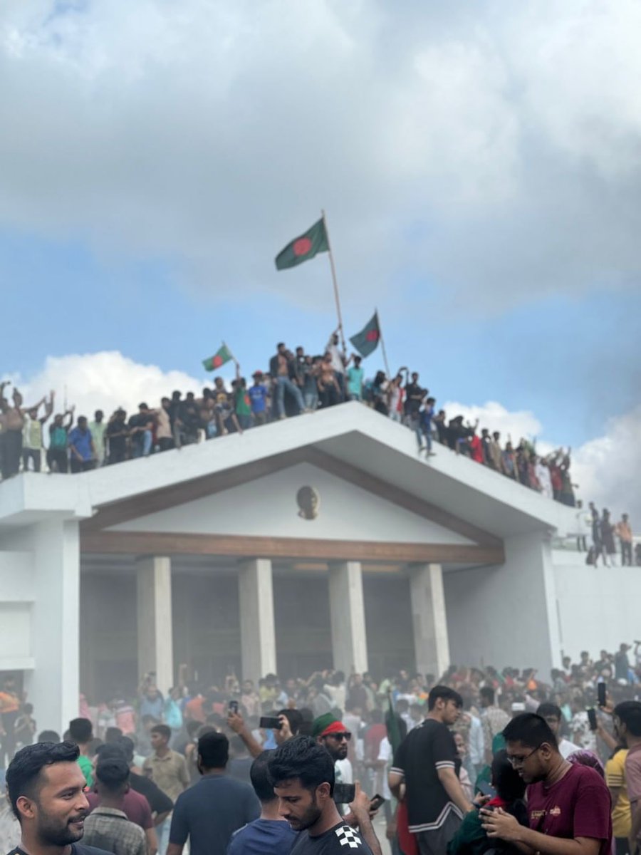 🇧🇩 La residencia de la primera ministra ha sido asaltada y saqueada por manifestantes.