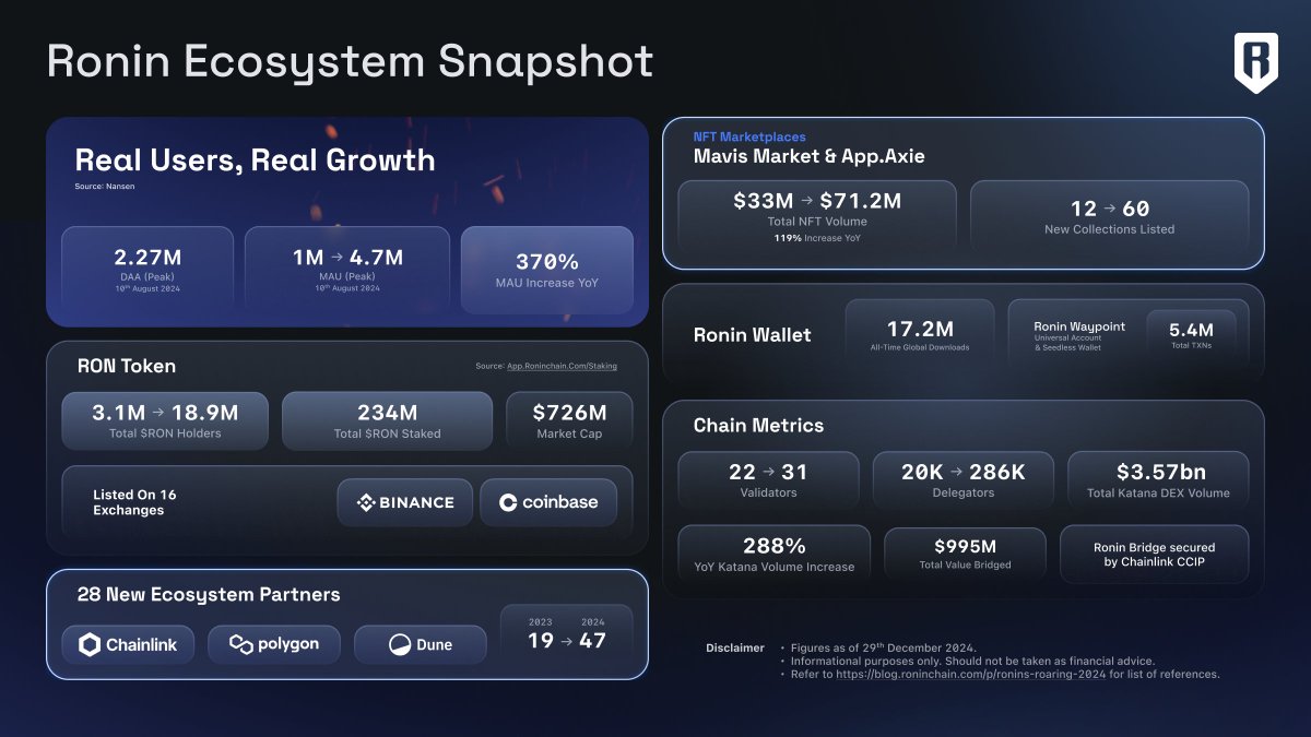 Ronin continues to rank as a top blockchain, reaching 11th place as of January 3rd, 2025.