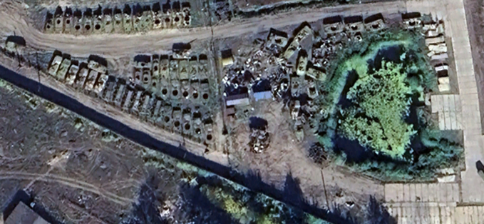 Take for example the 2456th tank storage base. The main facility is the one already known, but to the right there's the old scrapyard. Right when the war started they were scrapping T-62s and 64s there, but they stopped for obvious reasons: