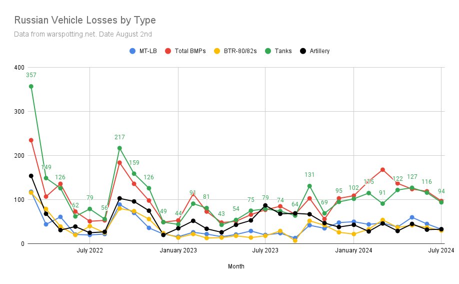 13/ And that's no surprise, the number of lost BMPs has been steadily brutal through the war (kudos to @UAControlMap for the graphic).