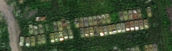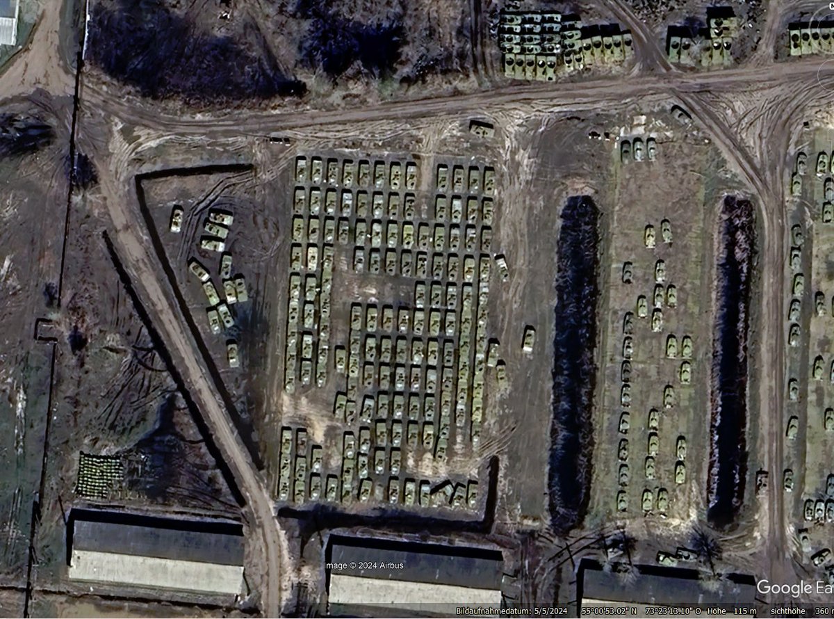 22/ At the 6018th for some reason there have been a bunch of working BMP-3s since 2023 that are constantly moved around. Maybe this base is being partially used for other things besied storage, as they also have started parking a lot of trucks at the spot where previously were MT-LBs.