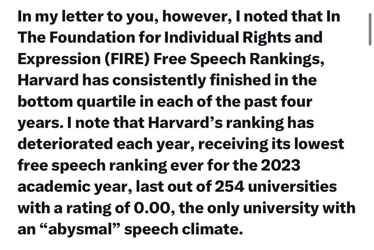 Here again is a Twitter-friendly version (that is, a thread that can be scanned visually and favorite parts tweeted separately) of yesterday's (December 10th's) open letter from @BillAckman to @Harvard regarding the Claudine Gay travesty (1)