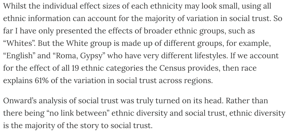 20/ Looking at social trust, race seems to explain a considerable percent of the variation between social trust between regions in the UK: aporiamagazine.com/p/lies-damned-…