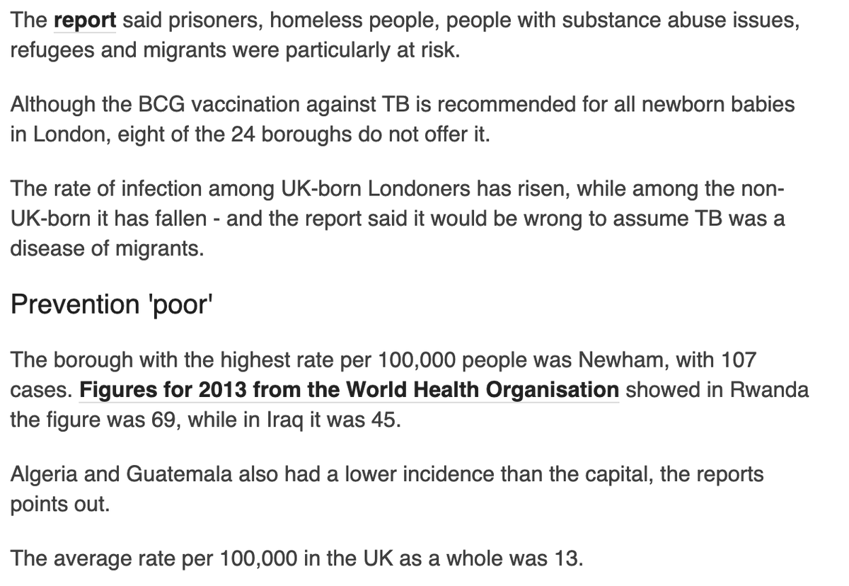 24/ We also see that some parts of London have very high rates of Tuberculosis, which seems to be partially driven by immigrants and refugees. bbc.com/news/uk-englan…