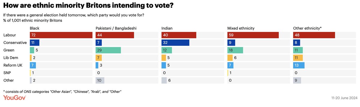 25/ Looking at political preferences, minority groups seem to mostly vote for labor: yougov.co.uk/politics/artic…