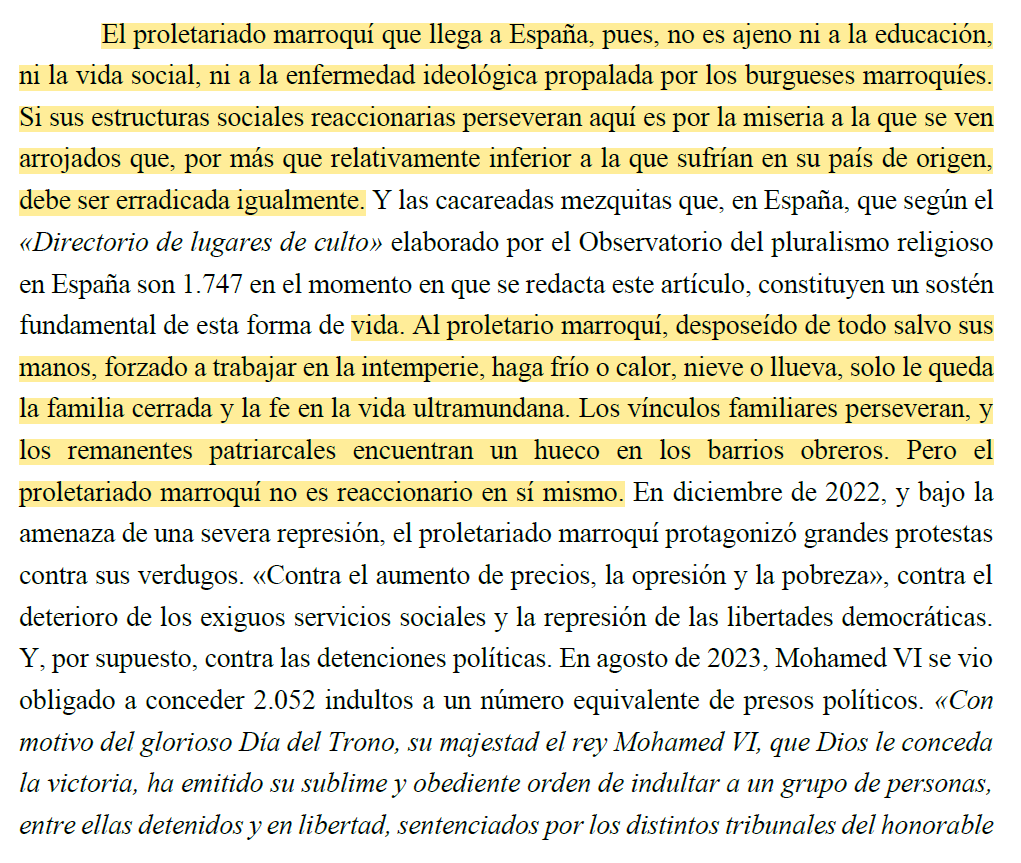 La conclusión, camaradas, es que el proletariado español ha contraído una deuda con el proletariado marroquí; la misma que ha contraído con el proletariado del resto del globo: la del internacionalismo y la de la camaradería en la lucha final.