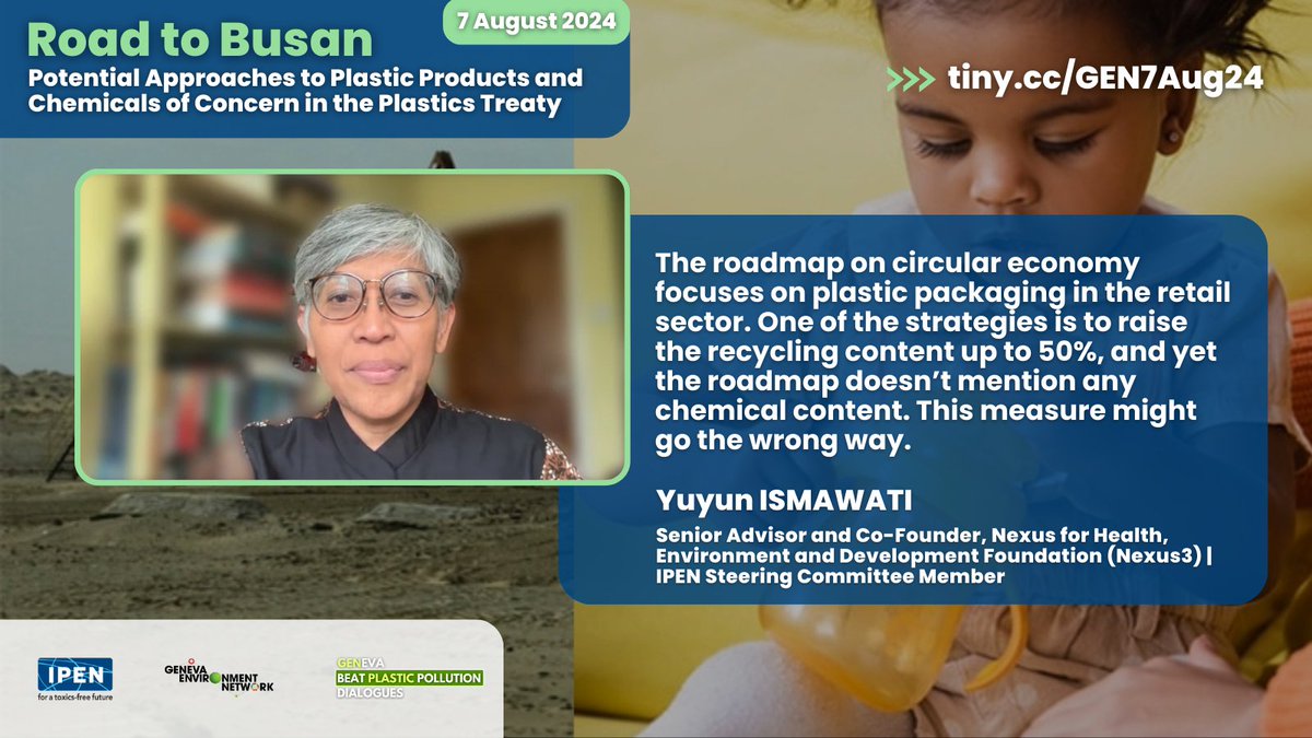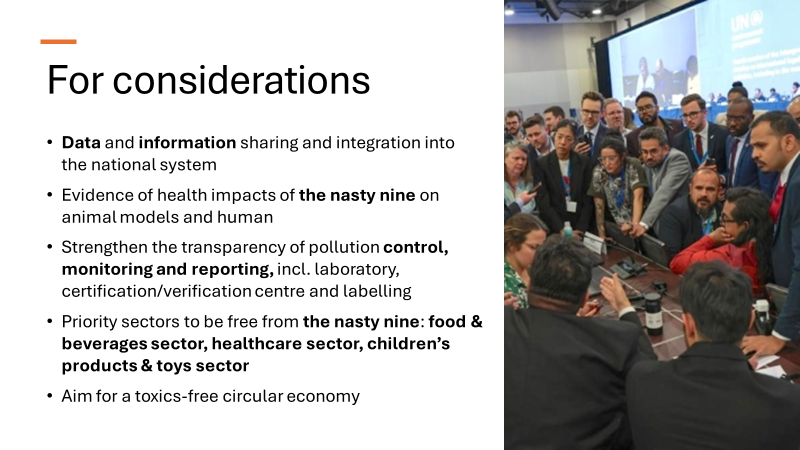 @ToxicsFree @HACplastic @ciel_tweets @TESSForum @ismawati64 @FokusNexus3 @EU_ENV @NorwayInGeneva @IUCN_Plastics @UNHumanRights @UruguayONUGva Providing an example of sectoral approach to chemicals in #plastics in #Indonesia, Yuyun Ismawati of @FokusNexus3 & @ToxicsFree stresses the importance of having the same terminology & of having #health sector awareness on plastic chemicals on NCDs and of the "nasty nine" toxics.