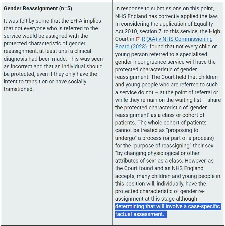 In more positive news, the NHS acknowledges that trans kids do actually exist and fall under the EA2010 protected characteristic of ‘gender reassignment’… Although they (incorrectly) believe this is based on a “case specific factual assessment”… performed by who? A GP? 🤷🏼♀️