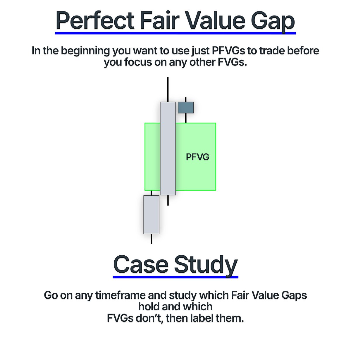As a beginner it is best to stick to just PFVGs in the beginning. To practice finding and seeing these FVGs we can do a Case Study.