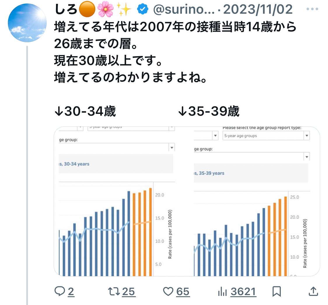 オーストラリア🇦🇺も30代になり、子宮頸がんが増え始めましたけど?