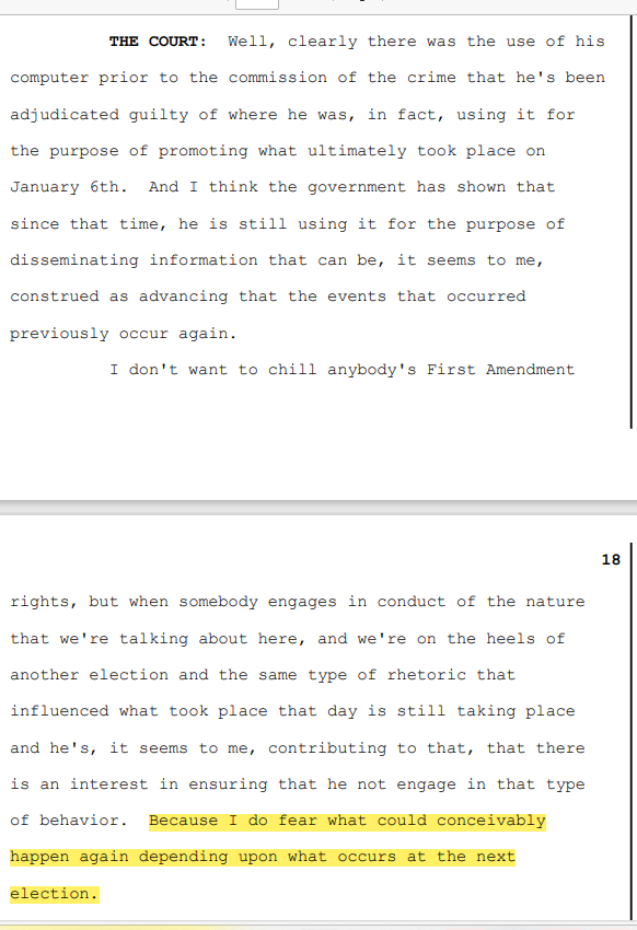 For example--in Feb 2024, DC appellate panel vacated a computer monitoring imposed by lunatic Judge Reggie Walton on J6er Daniel Goodwyn.