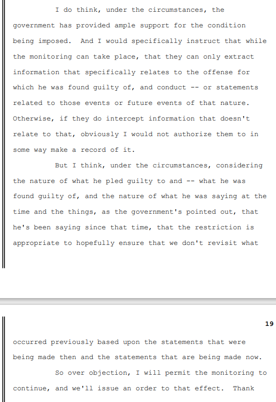 Despite a stern rebuke by DC appellate court and DOJ's laughably preposterous arguments about Goodwyn's "threat," Walton re-imposed the computer monitoring provision.