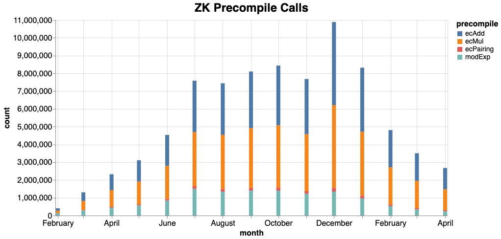 Usage of these spiked last year from the launch of ZK rollups like zkSync, Scroll, and Linea.
