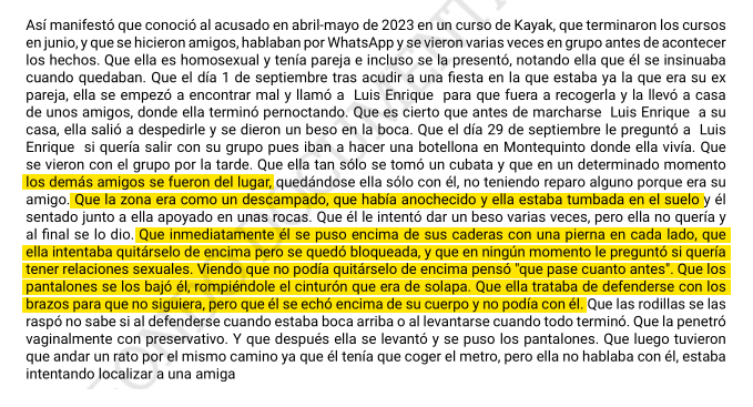 Esta mujer contó que tras un botellón estaba tumbada en un descampado, a solas con un amigo. Que él se le echó encima, le rompió el cinturón, le bajó los pantalones y la violó mientras ella se resistía. Por ello le pedía 9 años de cárcel. poderjudicial.es/search/AN/open…