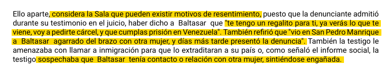 En base a esto los jueces dijeron que quizá, tal vez, hubiera motivos de resentimiento.