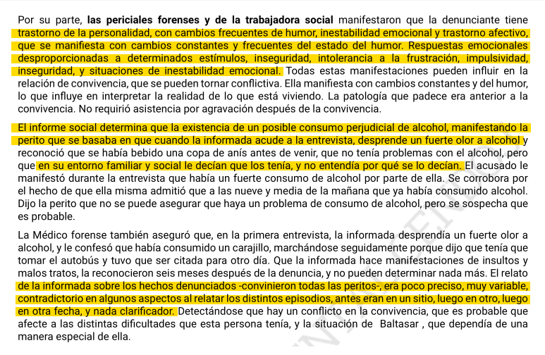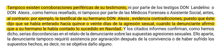 Ya sabéis que una "corroboración periférica" puede consistir simplemente en que la mujer le haya contado la misma historia a algún familiar, pero en este caso concreto ni siquiera eso se cumplía.