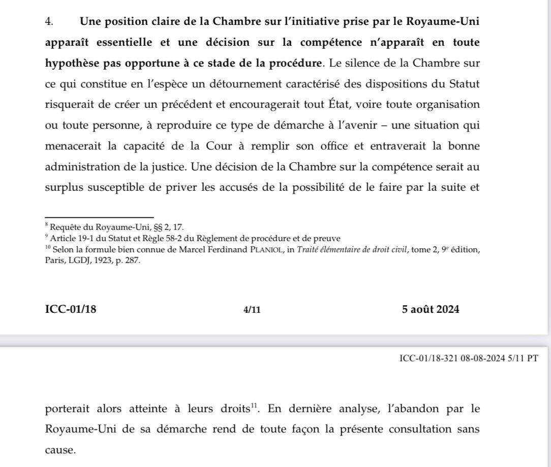 2. Un peu de contexte d’abord. Juste avant de quitter le pouvoir, le gouvernement conservateur 🇬🇧 a tenté de retarder, voire de bloquer, la délivrance de mandats d’arrêt contre B. Netanyahu et Yoav Gallant par la chambre préliminaire de la @CourPenaleInt.