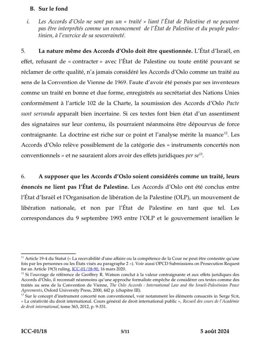 7. Pour s’opposer à ce que la @CourPenaleInt délivre les mandats d’arrêt, les alliés d’Israël, affirment donc qu’elle n’aurait pas de compétence sur des ressortissants israéliens, car l’Autorité palestinienne aurait renoncé à ce pouvoir en signant les Accords d’Oslo en 1995.