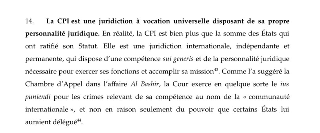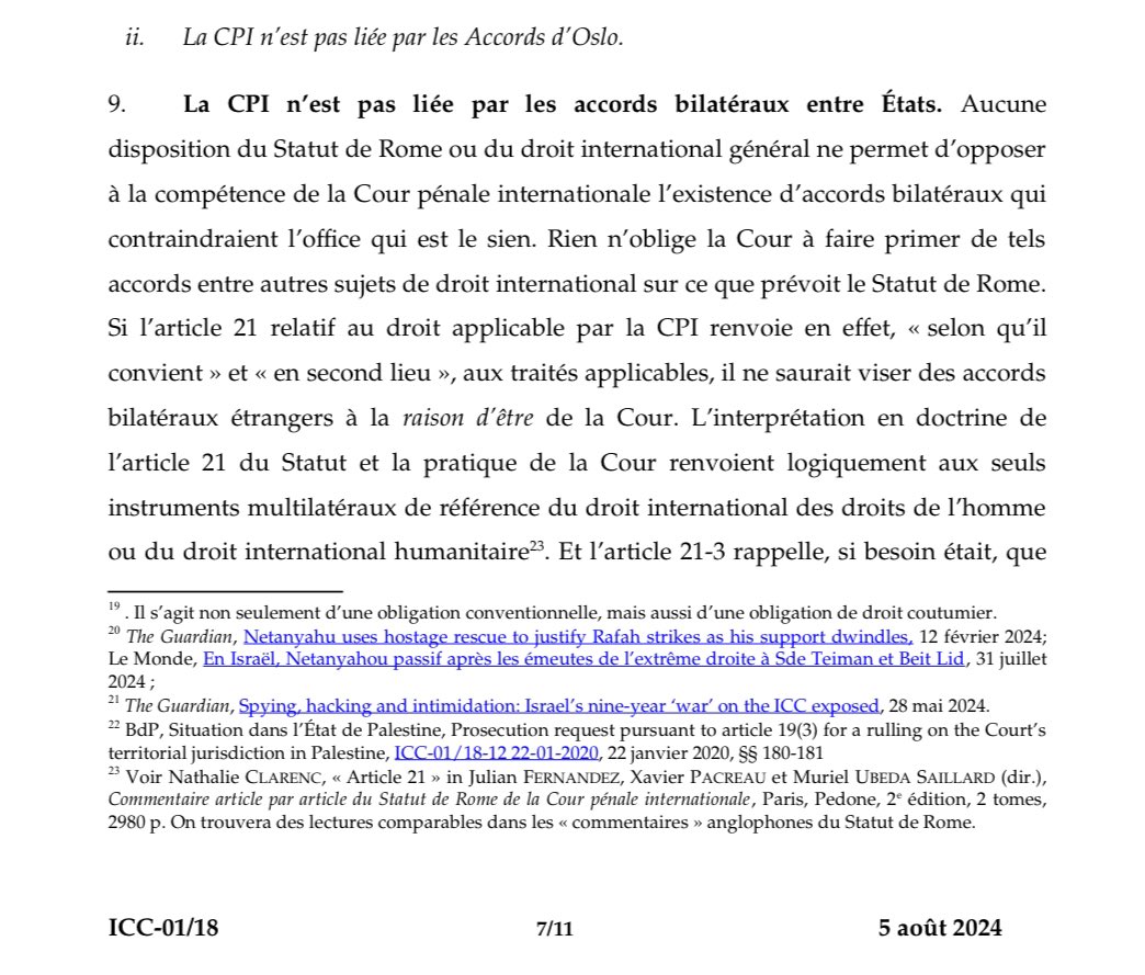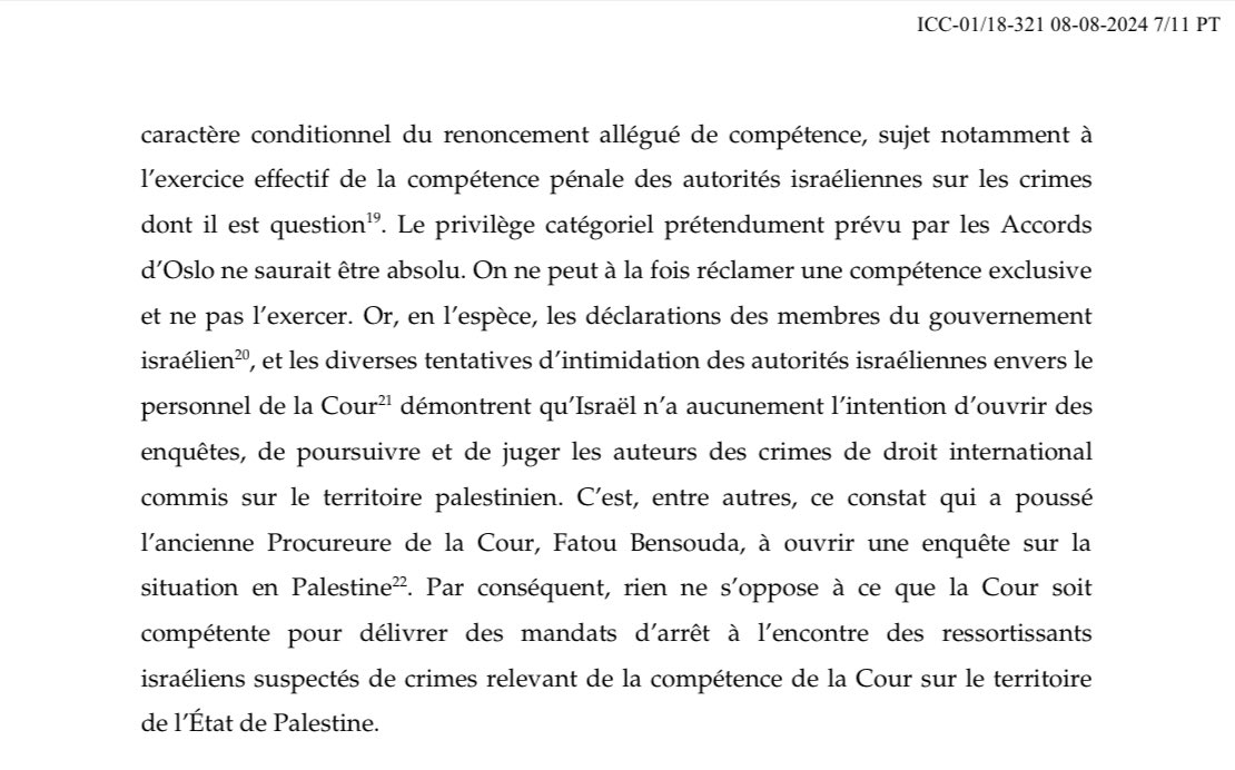 @CourPenaleInt 19. Bref, rien dans le Statut de la @CourPenaleInt ni dans le droit international coutumier ne s’oppose à ce que la Chambre préliminaire délivre des mandats d’arrêt contre des ressortissants israéliens. ⚖️