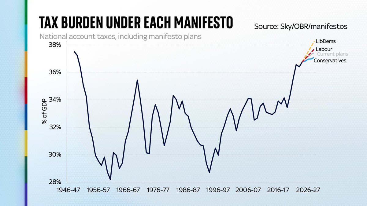 But they prefer not to talk about this, hiding instead behind the claim that tax rates on income tax, NICs and VAT won't rise. But they've still signed up to plans which will mean the AMOUNT of taxes we're paying will rise.