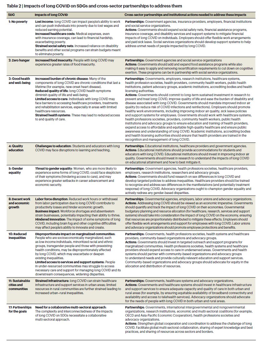 Impact on Sustainable Development Goals (SDGs): Long COVID threatens progress towards SDGs, affecting poverty, hunger, health, education, and gender equality across the globe. It exacerbates existing inequalities and strains resources. nature.com/articles/s4159…
