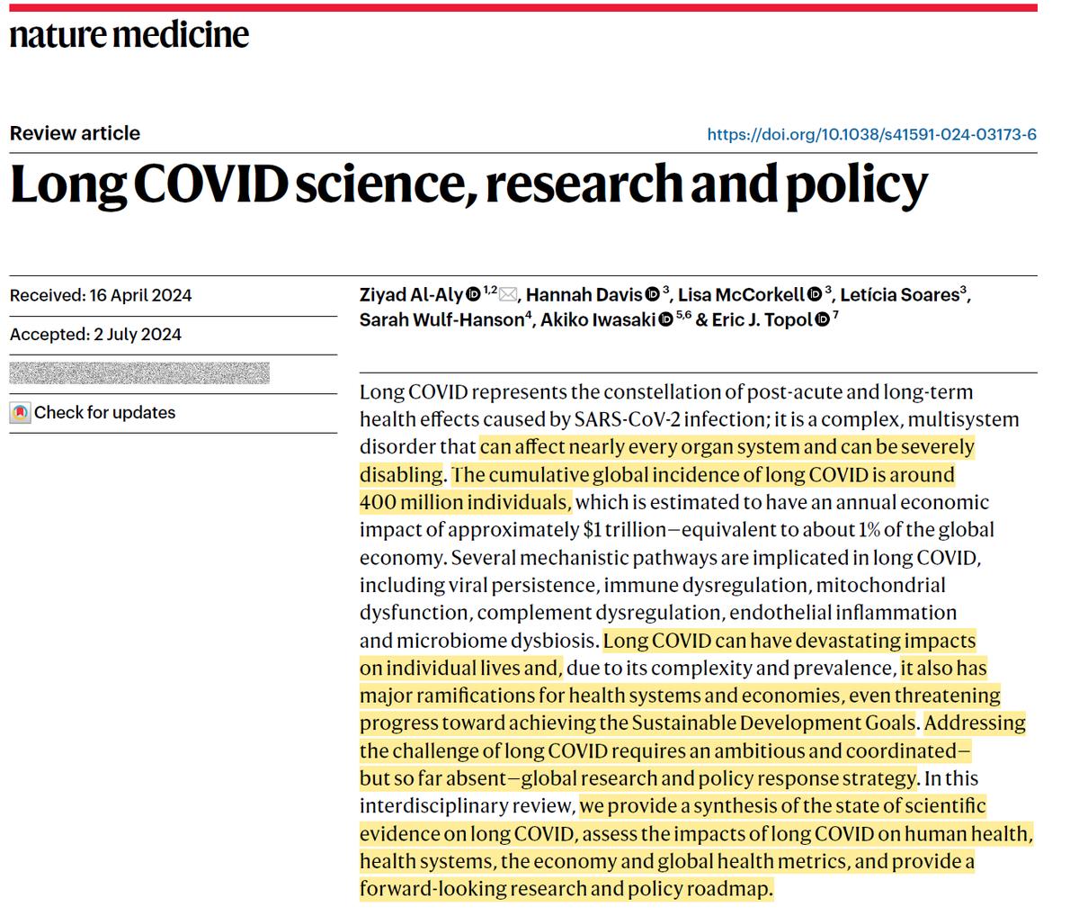 In this review, we provide (1) a synthesis of the state of science on Long COVID; (2) assess the impacts of Long COVID on individuals, health systems, the economy & global health metrics; and (3) provide a forward-looking research & policy roadmaps nature.com/articles/s4159…