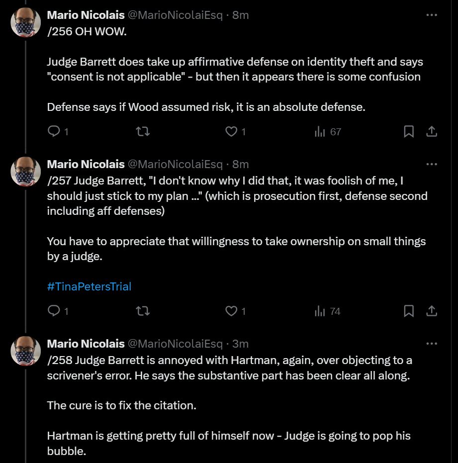 You can find all previous Tina Peters trial live tweets ๐งต along with the John #EastmanTrial and #JeffClarkTrial on ThreadReaderApp at threadreaderapp.com/user/Orly_liciโฆ