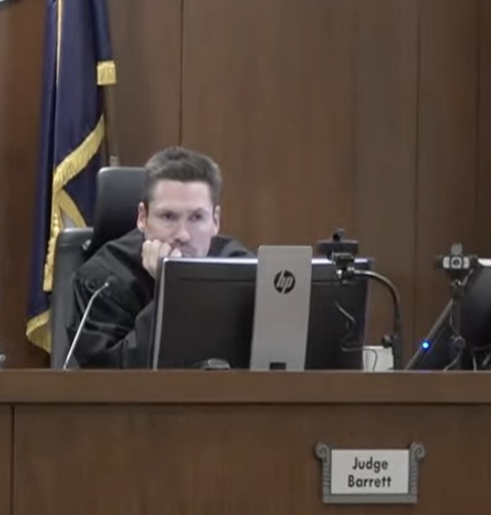 Judge Barrett has returned. To defense: "We're just waiting... to wait?"