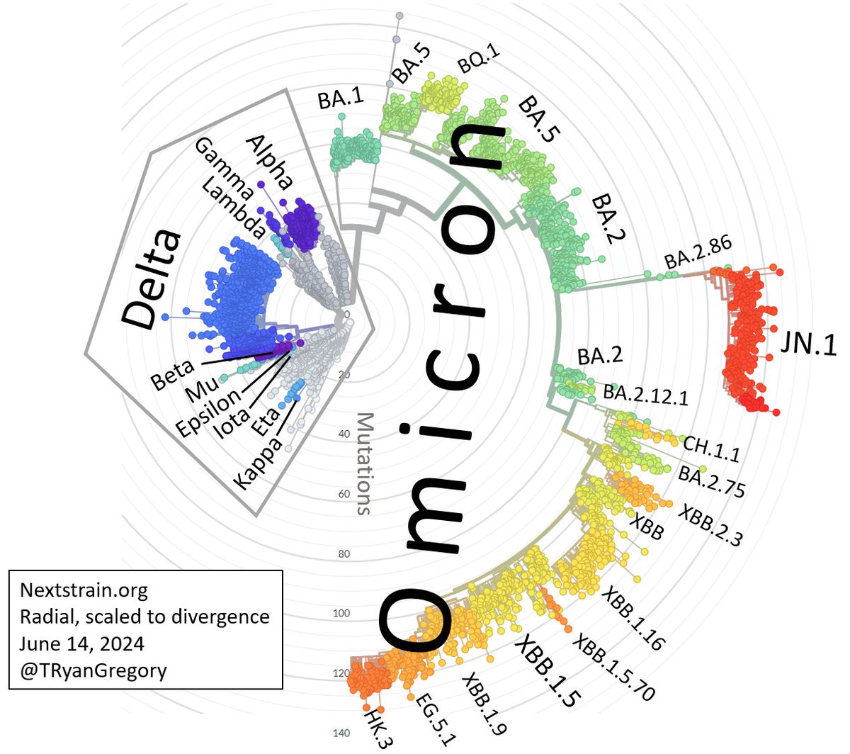 And on the two levels of evolution in action. Note that within-host processes (intrahost evolution during persistent infection and recombination during co-infection) are necessarily more common now than they were at the start of the pandemic.