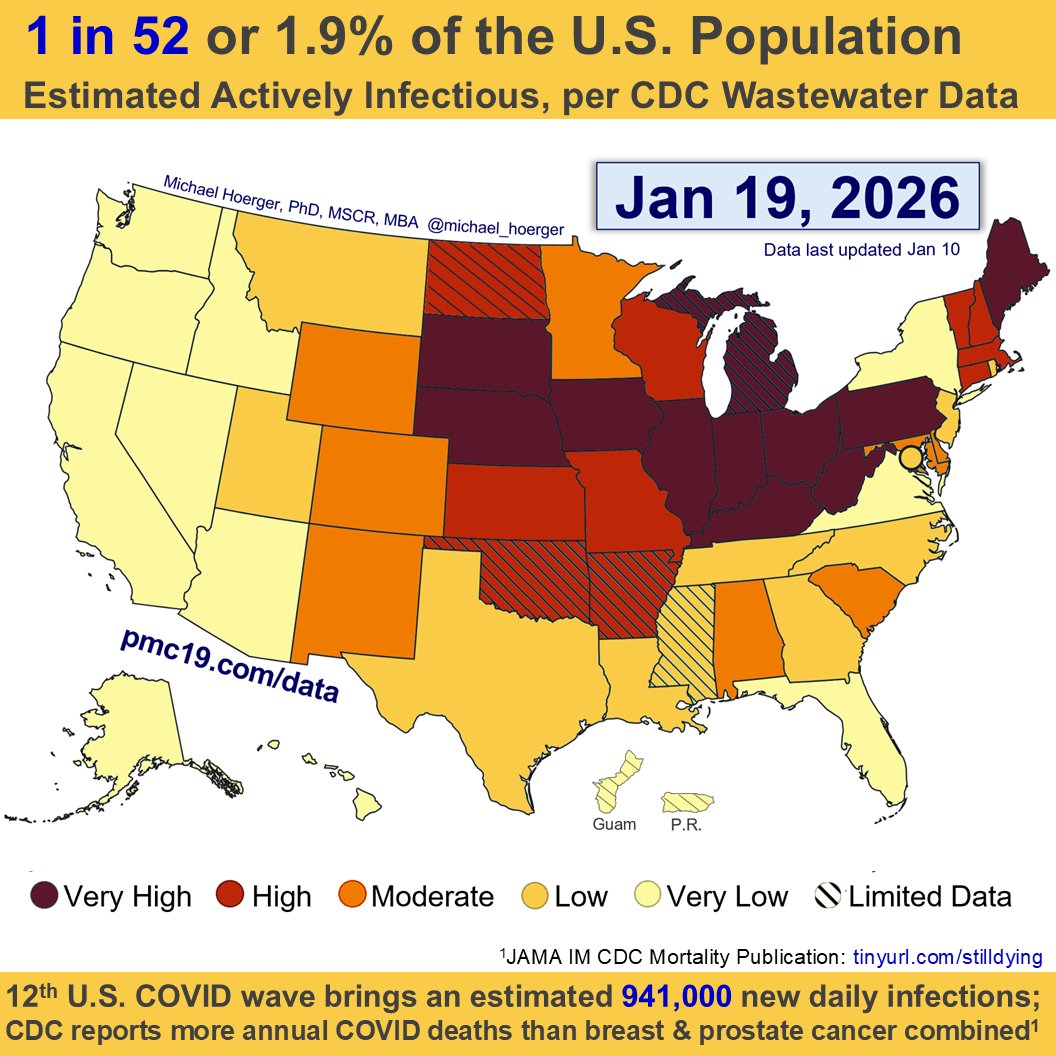 Based on today's CDC & Biobot data, we estimate the following for the week of Jan 19: