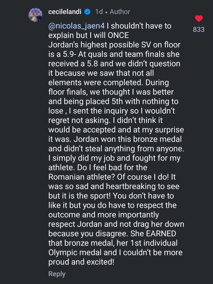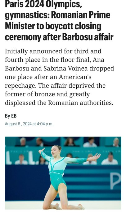 Ah, creo que sobre decir que la teoría del tongo de los jurados para el podium de 3 chicas negras para la campaña política de Kamala es insostenible, porque Jordan era la última en salir, el jurado solo tenia que haberla puntuado con más de 13.7 y saco 13.666. Es ABSURDA Image