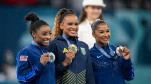 A todo este el podium era Oro, la brasileña Rebeca Andrade, plata la americana Simone Biles y tercera la americana Jordan Chiles. Primera vez en la historia que 3 gimnastas negras hacían un podium olímpico Image
