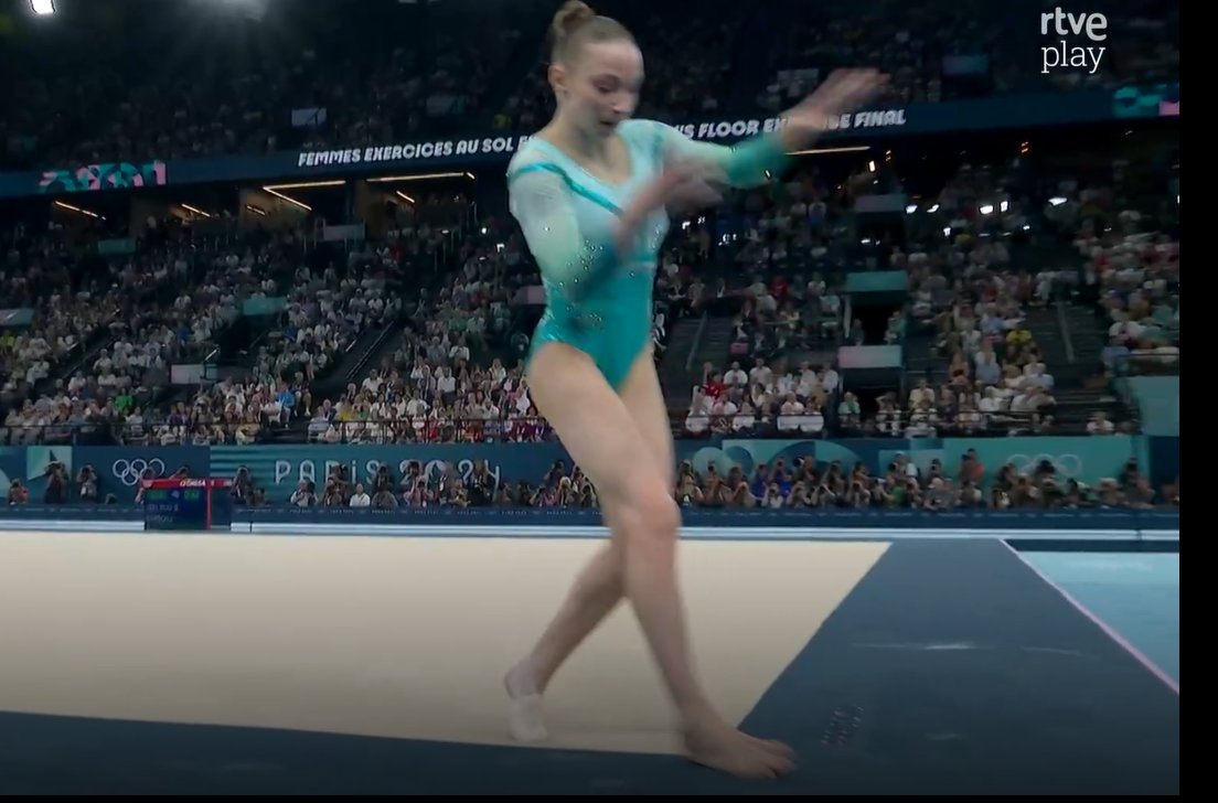 Sabrina Voinea no sacó el pie fuera, se quedó justo en la línea, pero al no ser reclamada esa penalización, el TAS no acepta ahora la reclamación y se queda con 13.700 empatada con Ana Barbuso, pero como su nota de ejecución es más alta, la medalla de bronce es para Ana Image