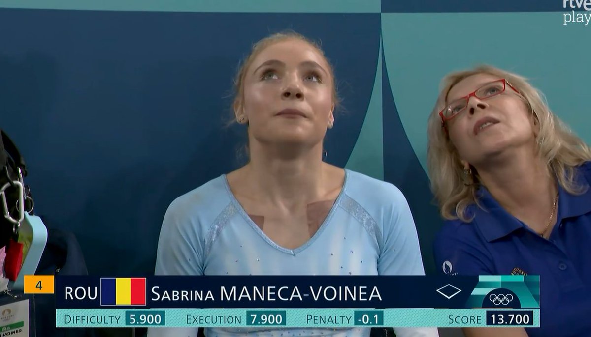 Su compañera Sabrina Voinea, la verdadera perjudicada en esta historia, obtuvo una nota de 13.700 con una penalización por sacar un pie fuera (nunca sacó ese pie fuera). Al empatar con su compañera Barbosu, esta se coloca por delante porque tiene una nota de ejecución mayor. Image