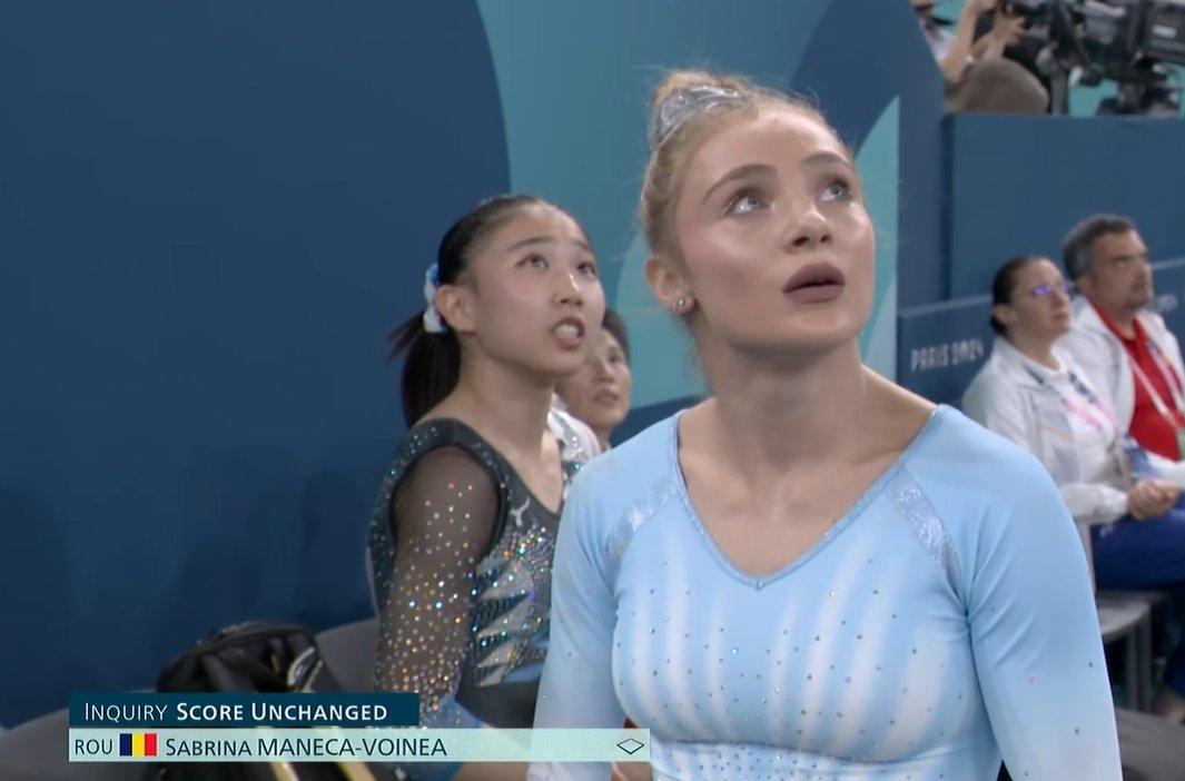 Y esto lo cambia todo, porque entonces Sabrina Voinea sin esa penalización habría obtenido una nota de 13.800 y, por lo tanto, habría ganado el bronce. ¿Por qué los jueces no aceptaron la reclamación?, en este momento se lía parda en Rumania, el primer ministro entra. Image