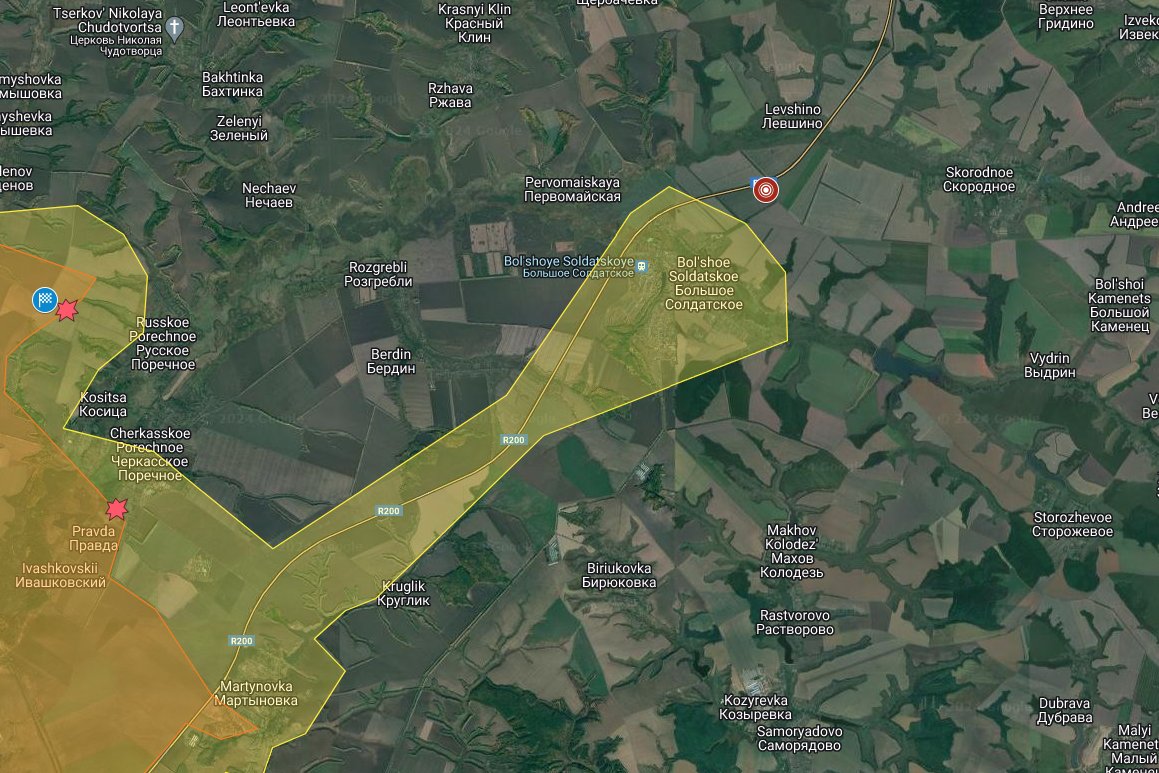 Russian sources claim, without evidence, that Ukrainian forces occupied Krasnooktyabrskoe and reached the eastern edge of Korenevo. No change at Korenevo. Russian claim extended from Snagost to Krasnooktyabrskoe.