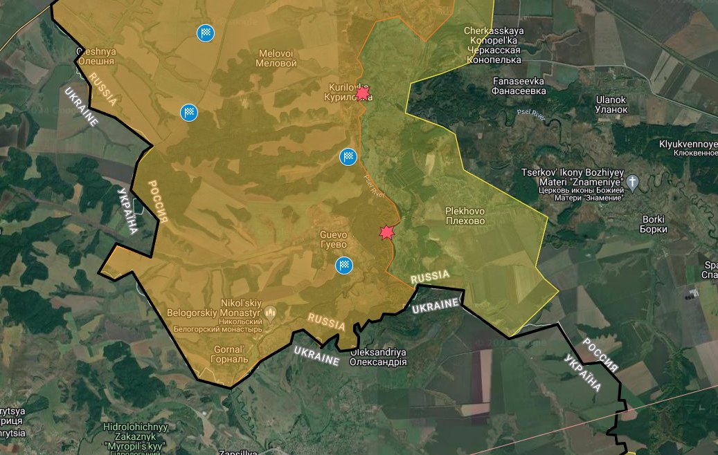 Several geolocations of Ukrainian forces south of Oleshnya, Melovoi, and Kurilovka. We are now confident the area west of the Psel River to the Russian-Ukrainian border is under Ukrainian control.