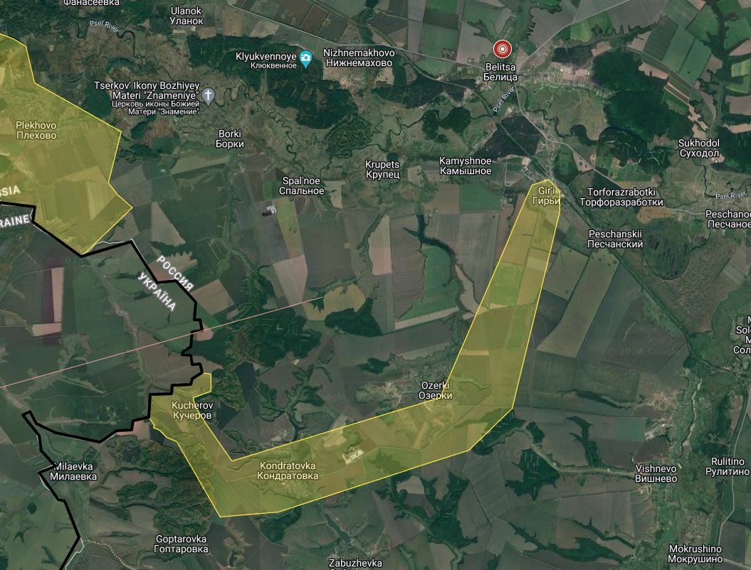Russians claim, without evidence, fighting is ongoing in Kucherov. Russians also claim, without evidence, that Ukraine has occupied Giri, where the Russian Railways Psel Train Station is located.