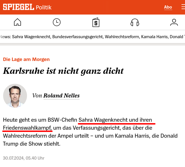 Liebe Medienmacher in Deutschland, können wir uns darauf einigen, dass Wagenknecht nicht auf „Friedens"-Wahlkampf setzt,