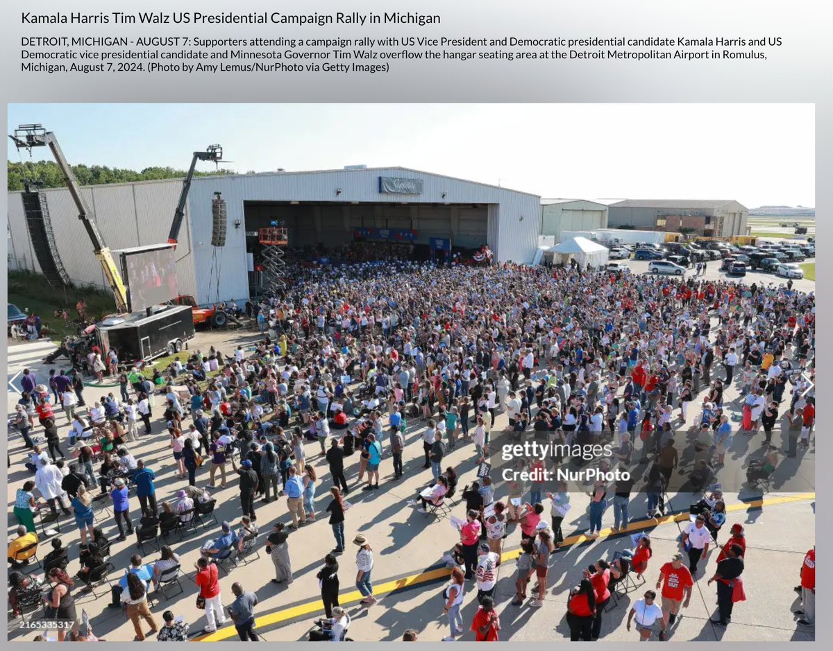 The crowd at the airport in Detroit was very real, as numerous videos and images from the rally prove.