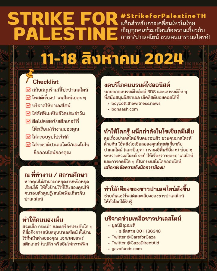 @THforPalestine & friends invite everyone to join #StrikeforPalestineTH to show solidarity with the Palestinian people
