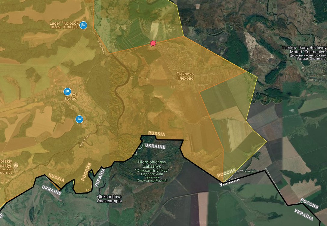 Multiple Russian claims that Ukraine has captured Plekhovo and multiple geolocations of Ukrainian forces in Guevo, west of the Psel River.