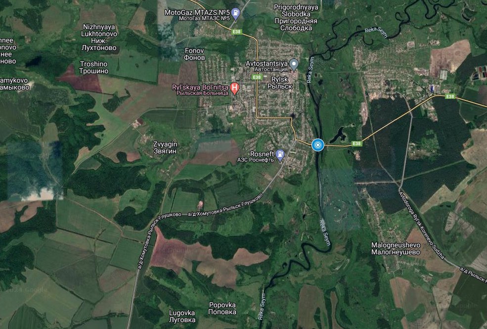 In Rylsk, the E-38 Highway Bridge over the Seym River was damaged by a munition. Damage is on the edge of the bridge, and it is still passable. Unclear what munition was used.