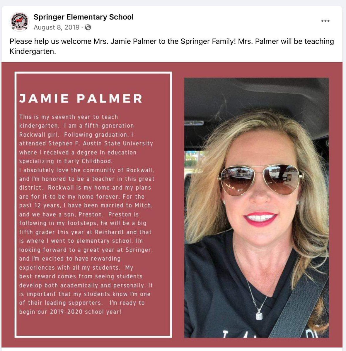 We have also already searched the TEA database for the teacherโs name. The accused teacher, Jamie Palmer, was NOT reported by the school administrators. Regardless if the accusations are true or not, Texas schools are required by law to report to the TEA so that they can open their own investigation. By not reporting Jamie Palmer, the school has committed a felony.