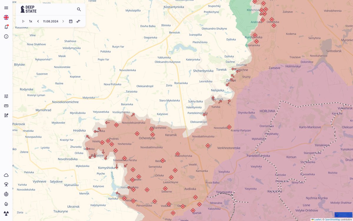 of the city of Toretsk. In the New York area, the Russians are leveling the front. Apparently, Ukrainian forces are leaving the zone to avoid being surrounded. The fighting continues also in Vovchansk in Kharkiv region and near Kupiansk Russia has some advances. 8/8